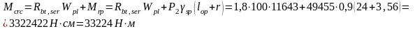 Момент образования трещин (при коэффициенте точности натяжения арматуры гsp=1-0,1=0,9)