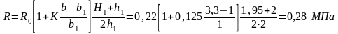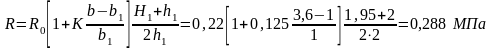 Так как заглубление фундамента меньше 2 м, ширина подошвы больше 1 м, необходимо учитывать нормативное давление на грунт по формуле: