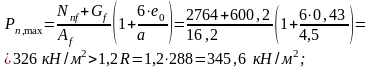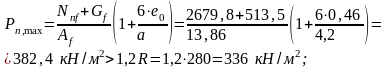 Проверка напряжений в основании показывает, что размеры подошвы фундамента достаточны.