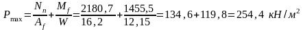 Определяем краевое давление на основание. Изгибающий момент в уровне подошвы фундамента: