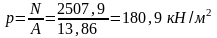 | N = 2507,9 кН | Nn = 2180,8 кН |