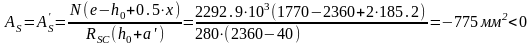 Принимаем симметричное армирование, тогда высота сжатой зоны:
