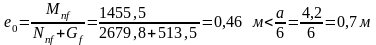 Определяем напряжения в грунте под подошвой фундамента в направлении длинной стороны а без учета веса фундамента и грунта на его уступах от расчетных нагрузок: