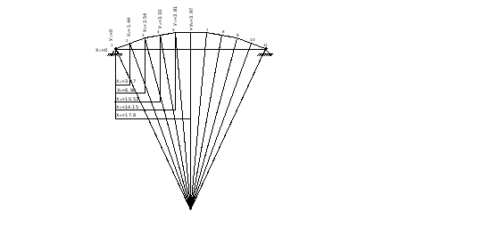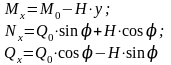 После вычисления балочных моментов и поперечных сил определяем расчётные усилия для всех сечений арки: