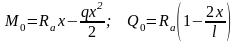При равномерно распределённой нагрузке балочные момента и поперечные силы находим по формулам: