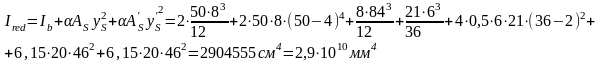 Момент инерции приведенного сечения при расстоянии до центра тяжести