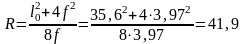 - стрела подъема, принятая равной примерно 1/9 пролета, то есть 3,97 м;