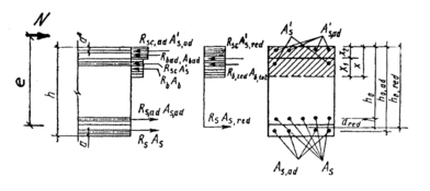 Ne ≤ Rb,adbx(ho,red – 0,5x) + Rsс As,red(ho,red – a) =
