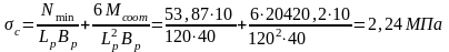 Определяем краевые напряжения в бетоне фундамента:
