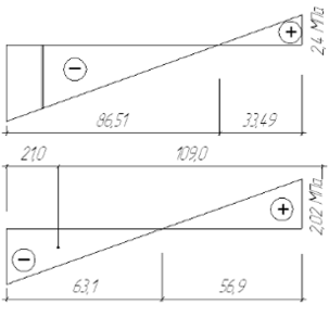 y = 1090 мм – расстояние от оси анкерных болтов до центра тяжести сжатой зоны эпюры напряжений.