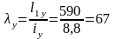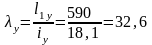 Визначаємо гнучкості стержня колони в площині та із площини рами