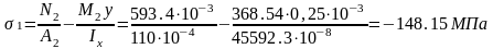 N2= 593,4 кН; М2=-368,54 Кн·м; Q2=0,5 кН;