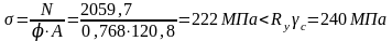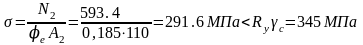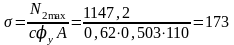 Перевіряємо стійкість перерізу верхньої частини колони на комбінацію N2max і M2 відп.: