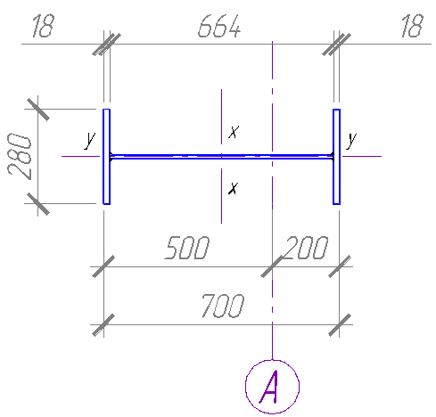 Сечение верхней части колонны принимаем в виде сварного двутавра высотой hв=700 мм (рисунок 20).