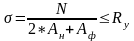σ=-620.07/(2*1150+3264)=111.4 МПа < 240 МПа.