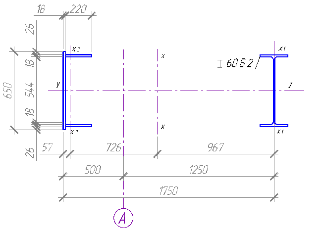Проверка устойчивости ветвей в плоскости рамы (относительно осей х1–х1 и х2–х2).