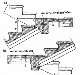 Плита марша имеет ступенчатую верхнюю поверхность, на которую после монтажа укладывают на растворе сборные железобетонные проступи. В площадочной плите одно ребро делают прямоугольным, а второе, служащее опорной балкой — с консолью для опирания лестничных маршей. Лестничные марши и плиты после их установки на место скрепляют между собой сваркой стальных закладных деталей.