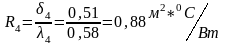 Rк — термическое сопротивление ограждающей конструкции, определяемое для нашего случая (четырехслойная конструкция) по формуле: