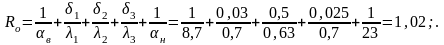 1,3 – известково-песчаный раствор γ=1600кг/м2 λ=0.7Вт/моС δ1= 0,03м δ3=0,025м