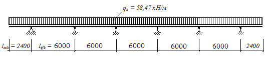 qb = 2,6 · 22,16 + 10 · 2,5 · 0,18 · 0,18 · 1,05 = 58,47 кН/м.