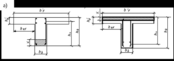 Розрахунковий переріз другорядної балки в прольотах, де полиця буде стиснута, залежить від положення нейтральної лінії.