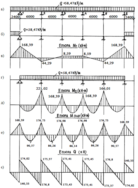 Опорні моменти за повного навантаження отримуємо шляхом алгебраїчного сумування опорних моментів за двома схемами.