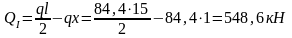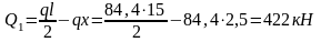 Определяем перерезывающую силу в сечении на расстоянии х = 2,5м: