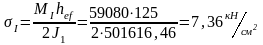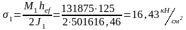 Определяем фактические напряжения для проверки устойчивости стенки балки в первом отсеке (сечение I-I)