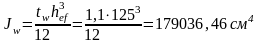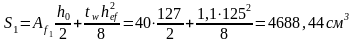 Определяем фактические геометрические характеристики подобранного сечения балки. Статический момент инерции всей балки определяем по формуле: