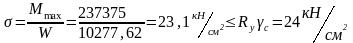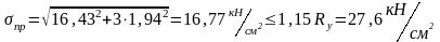 Проверяем прочность сечения на совместное действие нормальных и касательных напряжений. В соответствии с энергетической теорией прочности, проверку производим по приведенным напряжениям: