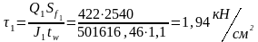 Для проверки местной устойчивости принимаем среднее значение касательных напряжений при условии, что они воспринимаются только стенкой: