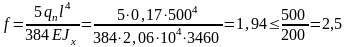 Принимаем двутавр №24: Wx= 289см3 ; Jx=3460 см4 ; Вес = 27,3 кг/м