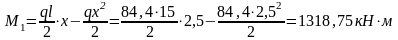 Определяем расчетный момент на расстоянии х = 2,5м: