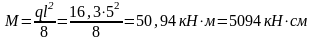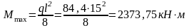 Расчетный изгибающий момент в середине пролета определяем по формуле:
