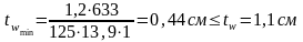 Толщину полки принимаем конструктивно tf = 20 мм, тогда высота главной балки h = 129 см.