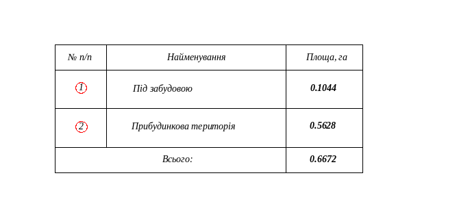 Дані по класифікації об’єктів земельної ділянки, що відводиться, представлені в таблиці