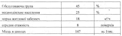 | Норма території м2/людину | 32 | 28 | 26 | 25 | 23 | 21 | 20 | 19,5 |
