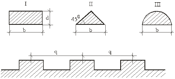 На рисунке приведен график Гануса, указывающий форму, размеры и шаг периодических членений стен (пилястр), дающих эффективное рассеивание звука в соответствующих областях частот.