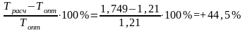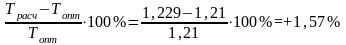 Вычисляем относительные различия между Tопт и Трасч (в %):