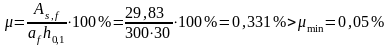 площадь одного стержня Аs,1 = 0,785 см2, всех стержней Аs,f = 38 Аs,1 = 29,83 см2.