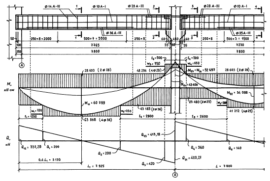 | Сечение i | ai см | h0, i см | li cм | Mi кНсм | As, i см2 |