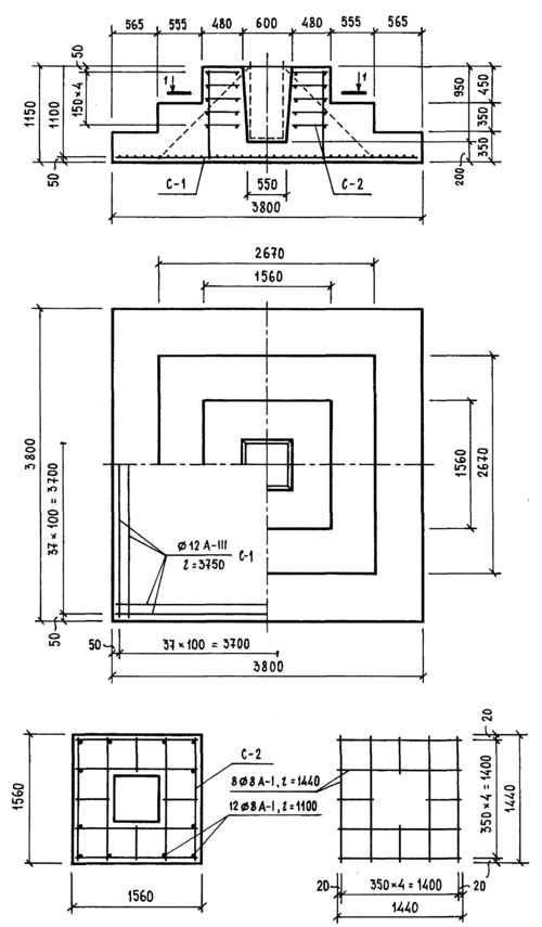 Лист 4. Армирование фундамента под колонну (М 1: 50).