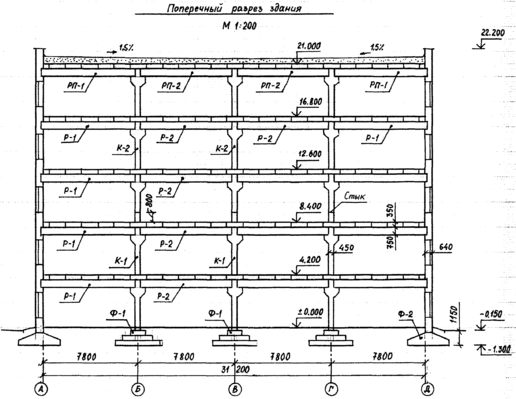 Рабочая высота нижней ступени фундамента должна соответствовать условию прочности бетона по наклонному сечению на действие поперечной силы при отсутствии поперечного армирования в сечении, начинающемся на нижней границе пирамиды продавливания для первой ступени.