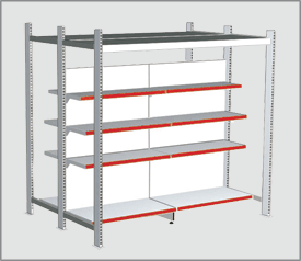 Также в качестве оборудования торгового зала используются сборные секционные стеллажи. Ширина такого стеллажа 1м, высота – 5м, длина одной секции – 2м. Общая длина стеллажа может достигать 10м.