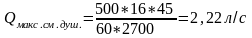 Расход воды душа для максимальной смены по числу душевых сеток.