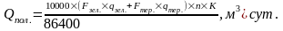 Qпол=1000*(12,38*4+10,22*0,35)*1*4/86400=24,58 м3/сут.