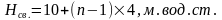 Величина свободного напора зависит от этажности зданий и определяется по формуле: