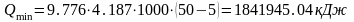 где - плотность воды, (1000 кг/м3); с - теплоемкость, (4,187 кДж/кг°С);