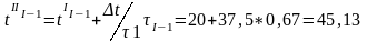 ) разбивают на 3 стадии в каждой из которых, в соответствии со средними за стадию параметрами процесса, определяют искомые температуры. При этом принимают во внимание, что конец первой стадии - есть начало второй, конец второй - есть начало третьей и т.д. (в период изотермической выдержки и охлаждения разбивку на стадии не производят).