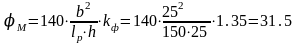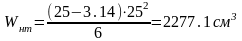 где Fнт = Fбр - Fосл = 25 ∙ 25 - [6.5 ∙ 25 + (25 – 6.5) ∙ 2] = 425.5 cм2 – площадь сечения нетто с учетом ослабления врубкой hвр2 =6.5 см и стяжным болтом d = 2 см.